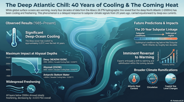 This blog post and the “Deep Dive” podcast, created by NotebookLM, are based on “Rapid subsurface warming in the subpolar North Atlantic from freshening" by Menviel et al. (2026). Menzviel et al. (2026) study explores how increased freshwater from melting Arctic ice and the Greenland Ice Sheet triggers rapid subsurface warming in the subpolar North Atlantic.... Continue Reading →