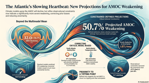 This blog post and the “Deep Dive” podcast, created by NotebookLM, are based on “Observational constraints project a ~50% AMOC weakening by the end of this century” by Portmann et al. (2026). Portmann et al. (2026) published in Science Advances utilizes observational constraint methods to refine future projections of the Atlantic Meridional Overturning Circulation (AMOC), a critical system of ocean... Continue Reading →