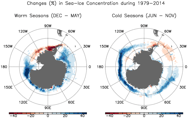 Since late 1978, Antarctic sea-ice extent has overall expanded in all seasons in stark contrast to the retreating Arctic sea-ice extent. However, while the sea-ice extent around East Antarctica has increased monotonically, the sea-ice around West Antarctica exhibits regionally and seasonally inhomogeneous trends. For instance, Antarctic sea-ice extent in the East Pacific has decreased substantially... Continue Reading →
