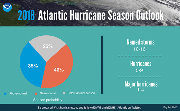 NOAA’s forecasters predict a 70-percent likelihood of 10 to 16 named storms (winds of 39 mph or higher), of which 5 to 9 could become hurricanes (winds of 74 mph or higher), including 1 to 4 major hurricanes (category 3, 4 or 5; with winds of 111 mph or higher). An average hurricane season produces 12 named storms,... Continue Reading →