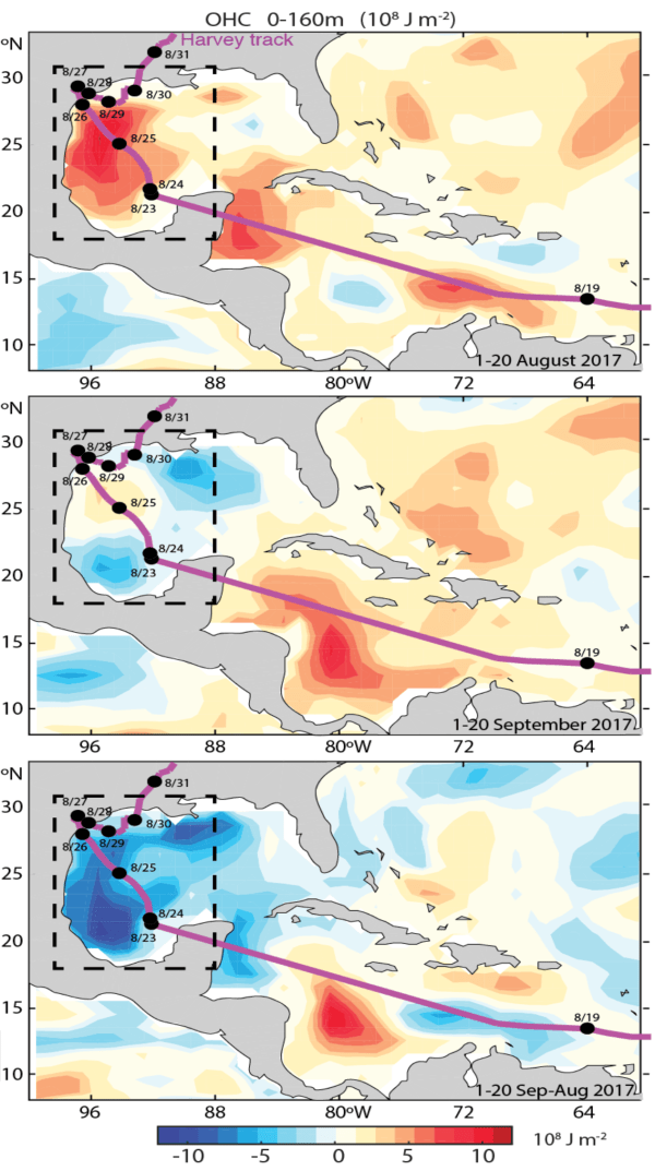 Hurricane Harvey links to ocean heat content and climate change adaptation