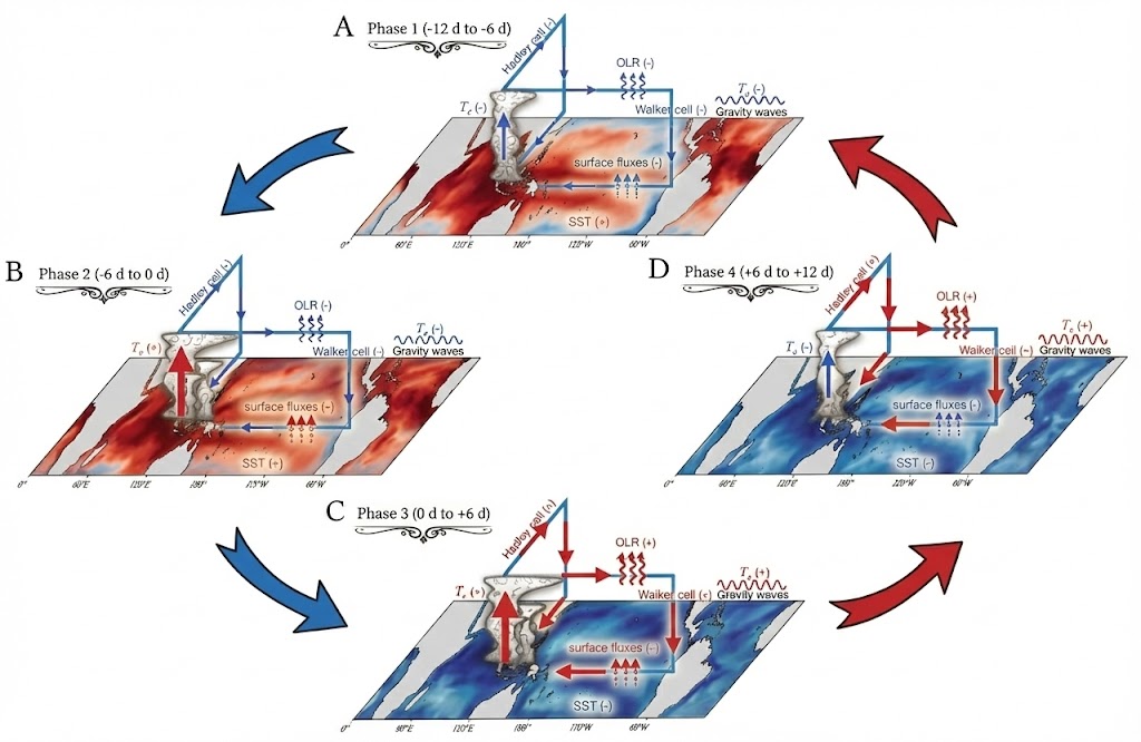 By analyzing daily data from across the tropical region (30°N to 30°S), scientists found a clear and regular oscillation that was previously overlooked. Contrary to the expectation that tropical-mean variables would change smoothly over long periods, the data showed pronounced peaks of activity every 30 to 60 days.