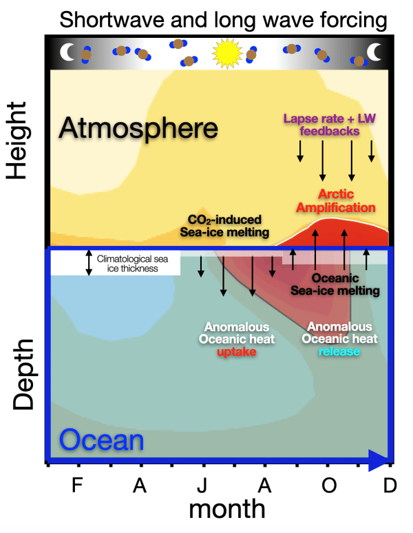 The Arctic warming response to increasing greenhouse gas is substantially greater than the rest of the globe. It has been suggested that this phenomenon, commonly referred to as Arctic amplification, and its peak in boreal fall and winter result primarily from the so-called lapse-rate feedback, which is associated with the vertical structure of tropospheric warming,... Continue Reading →