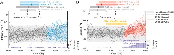 North Atlantic zonal winds will shift northward and become more extreme in the future
